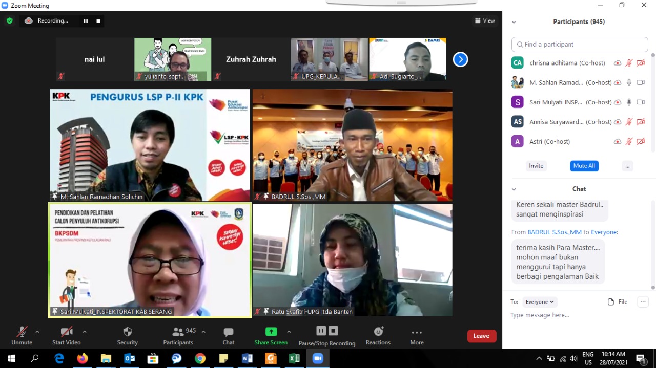 Jakarta – Komisi Pemberantasan Korupsi (KPK) melalui Direktorat Gratifikasi bekerja sama dengan 611 Unit Pengendalian Gratifikasi (UPG) di seluruh Indonesia menggelar sosialisasi untuk meningkatkan pemahaman tentang gratifikasi. Kegiatan dilakukan secara daring pada Rabu, (28/7/2021).