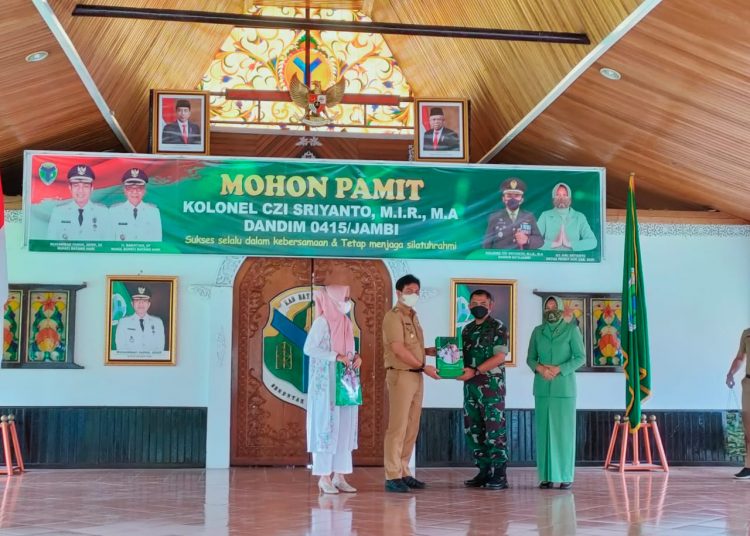 Batanghari – Dandim 0415/Jambi Kolonel CZI Sriyanto,M.I.R.,M.A beserta Istri Berkumpul Bersama di serambi Pendopo Rumah Dinas Bupati Batanghari dalam rangka pelepasan mohon Pamit. Senin (18/04/2022).