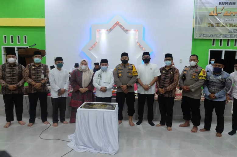 Sengeti – Bupati Muaro Jambi Hj. Masnah Busyro, SE, M.Tr.IP menyaksikan langsung peresmian rumah tahfidz Al-‘Amilin di Desa Kedotan Kecamatan Sekernan yang diresmikan oleh Gubernur Jambi Dr. H. Al Haris, S.Sos. MH, Rabu malam (19/01/22).