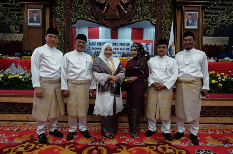 Jambi – Bupati Muaro Jambi, Hj. Masnah Busyro, menghadiri rapat paripurna DPRD Provinsi yang dipimpin Ketua DPRD Edi Purwanto dalam rangka memperingati hari jadi Provinsi Jambi ke 65, Kamis (06/01/2022).