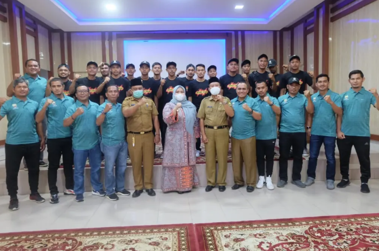 Sengeti – Bupati Hj. Masnah Busro, SE. M.Tr.IP melepas tim sepak bola Kabupaten Muaro Jambi untuk mengikuti pertandingan piala gubenur cup Tahun 2022 dari aula rumah dinas bupati, Selasa (04/01/2022).