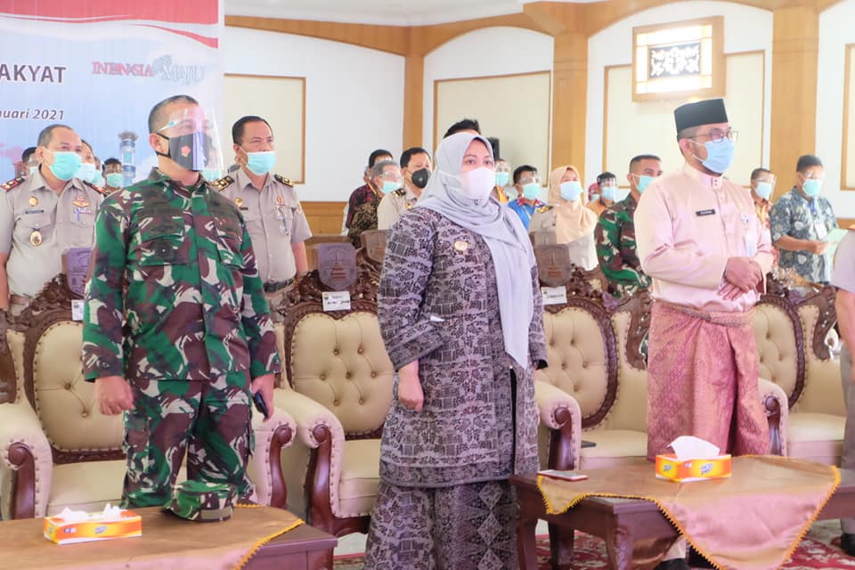 JC, Muaro Jambi – Bupati Muaro Jambi Hj. Masnah Busyro, SE mengikuti acara vidio conference lansung dari istana negara dalam acara penyerahan sertifikat tanah gratis kepada masyarakat secara simbolis oleh Presiden Republik Indonesia Ir. H. Joko Widodo. Acara berlangsung di Ruang Pertemuan Nang Inang Kantor Bupati Muaro Jambi, Selasa (5/1/21).