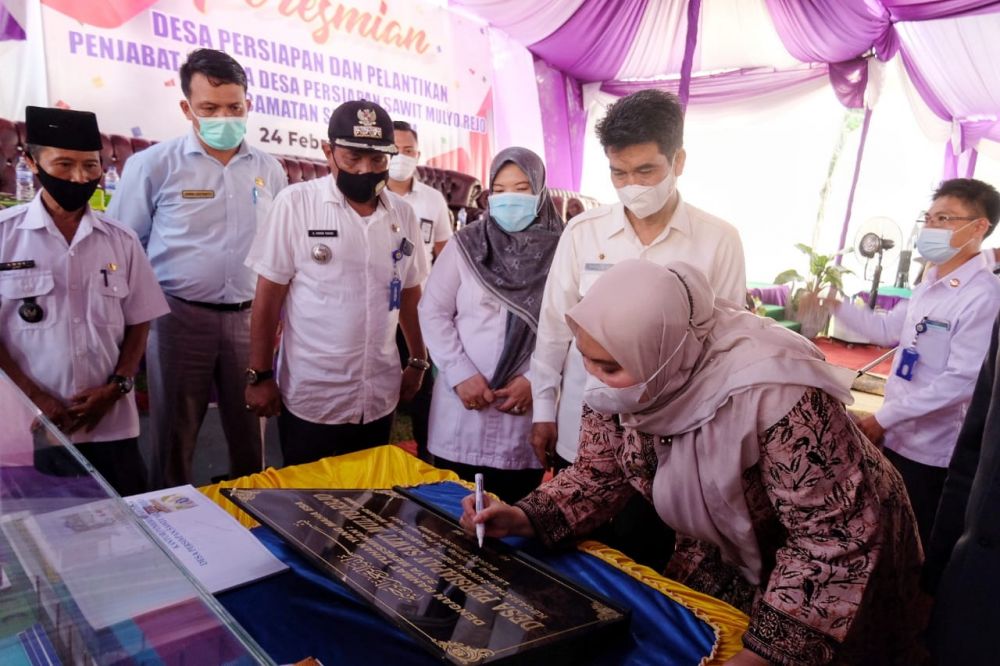 JC, Muaro Jambi – Pemerintah Kabupaten (Pemkab) Miarojambi kembali meresmikan Desa Sawit Mulyo Rejo akan menjadi desa definitif yang diresmikan oleh Bupati Muarojambi Masnah Busro (24/2) Kamis.