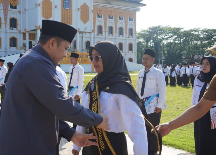 Merangin – Ada yang menarik ketika Bupati Merangin H M Syukur menyerahkan 252 Surat Keputusan (SK) pengangkatan Calon Pegawai Negeri Sipil (CPNS) formasi 2024, di halaman kantor bupati Merangin, Senin (16/6/2025).