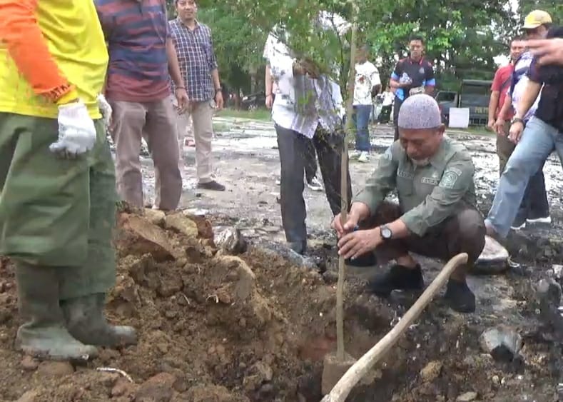 Merangin – Bupati Merangin H.Mashuri tanam pohon di kawasan Taman PKK Bangko bekas area para pedagang yang alami kebakaran beberapa waktu yang lalu, Jumat (4/8/2023).