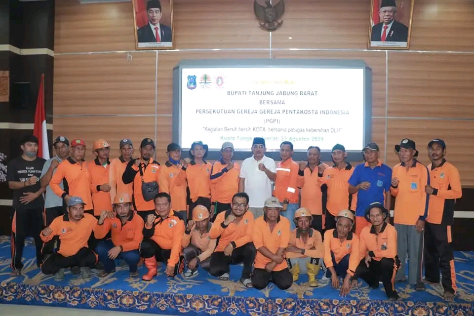 Kuala Tungkal – Bupati Tanjung Jabung Barat, Drs. H. Anwar Sadat, M.Ag, menyambut hangat kegiatan Temu Muka Persekutuan Gereja-Gereja Pentakosta Indonesia (PGPI) dalam rangka “Kegiatan Bersih-Bersih Kota Bersama Petugas Kebersihan DLH,” Jumat (23/8).