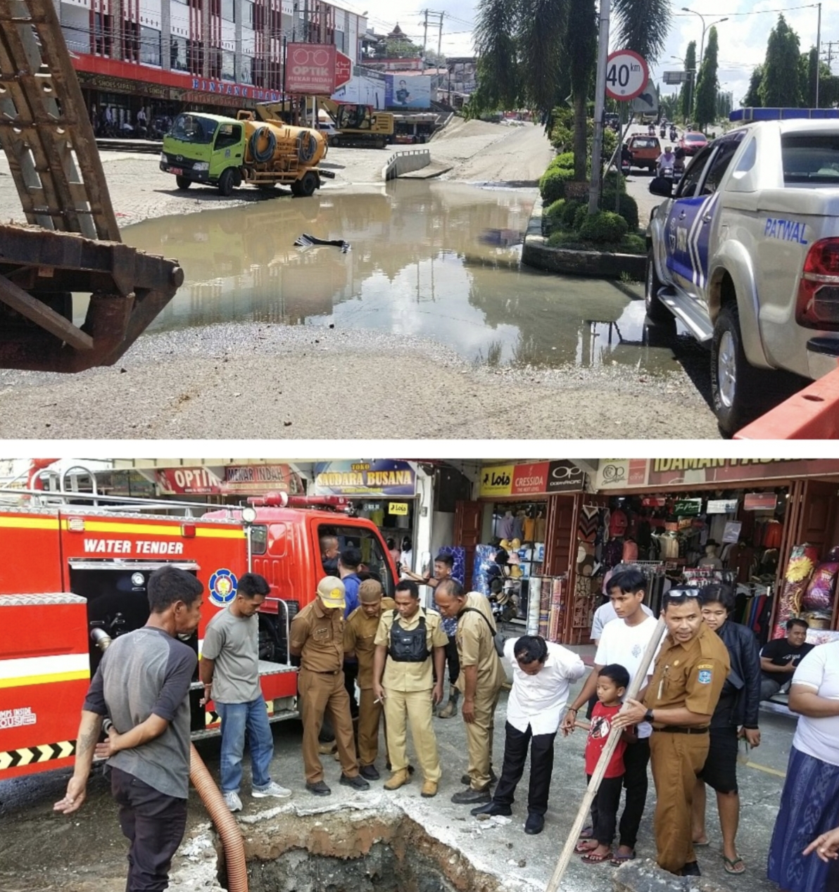 Merangin – Pemerintah Kabupaten Merangin bersama Instansi terkait melakukan perbaikan genangan air yang merendam Jalan Tiga Jalur di Depan Pertokoan Idaman Kabupaten Merangin yang sudah berlangsung lam, sehingga dikeluhkan pengendara bermotor dan masyarakat.