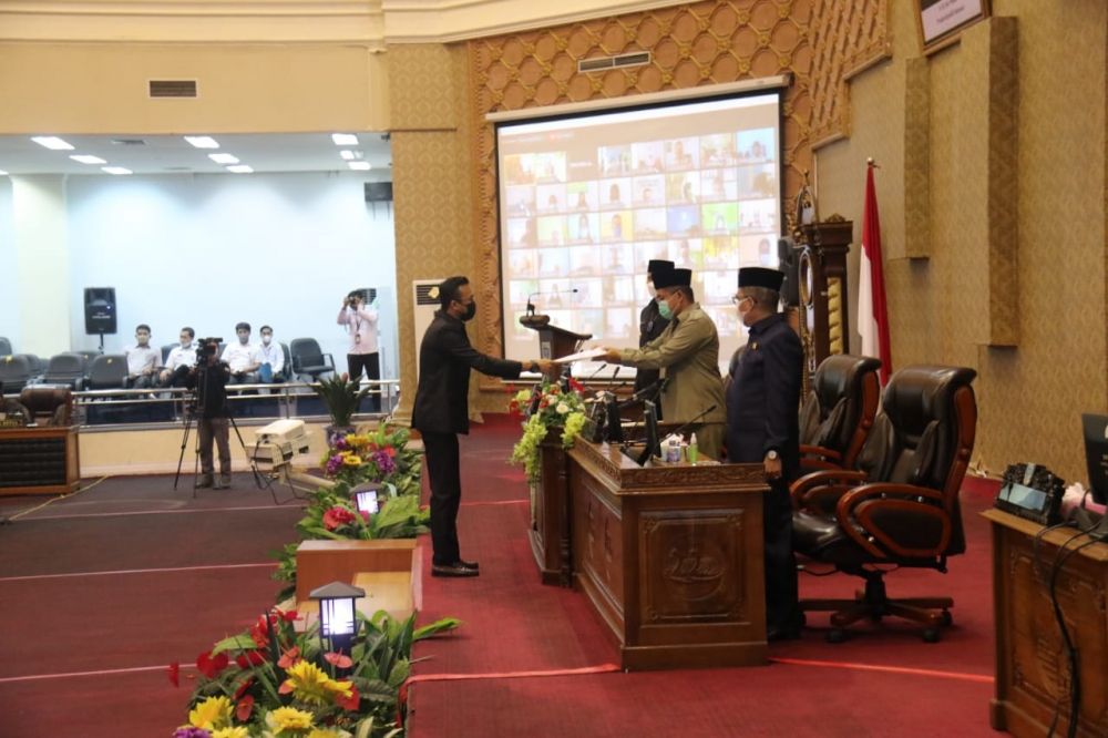 Paripurna ini berlangsung di gedung swarna bumi DPRD Kota Jambi, yang di laksanakan secara virtual.