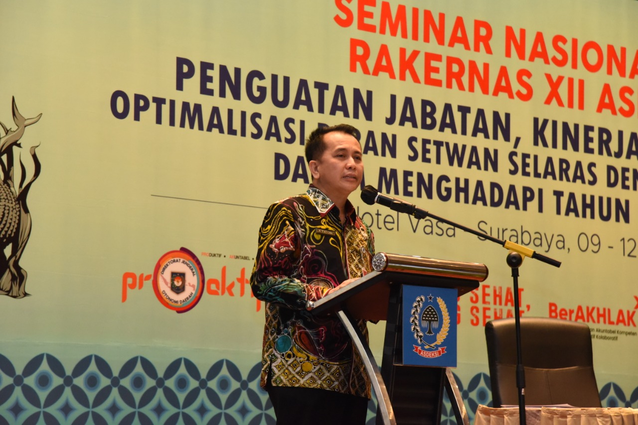 Penjelasan tersebut disampaikan Direktur Jenderal (Dirjen) Bina Keuangan Daerah (Keuda) Kementerian Dalam Negeri (Kemendagri) Agus Fatoni saat menjadi pembicara kunci dalam acara Seminar Nasional dan Rapat Kerja Nasional Asosiasi Sekretaris DPRD Kabupaten/Kota Seluruh Indonesia (ASDEKSI) bertajuk “Penguatan Kinerja Keuangan Pada Sekretariat DPRD tang Selaras Dengan Sistem Kerja DPRD”, di Hotel Vasa, Surabaya, Jawa Timur, Sabtu (11/6/2022).