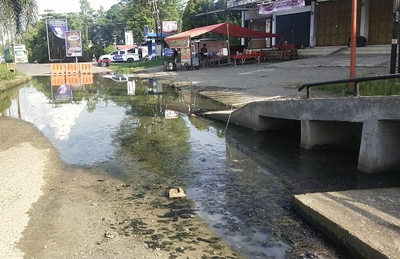 Merangin – Persoalan terkait genangan air yang merendam di Jalan Tiga Jalur depan komplek pertokoan Idaman, Kabupaten Merangin, Provinsi Jambi, bertambah.