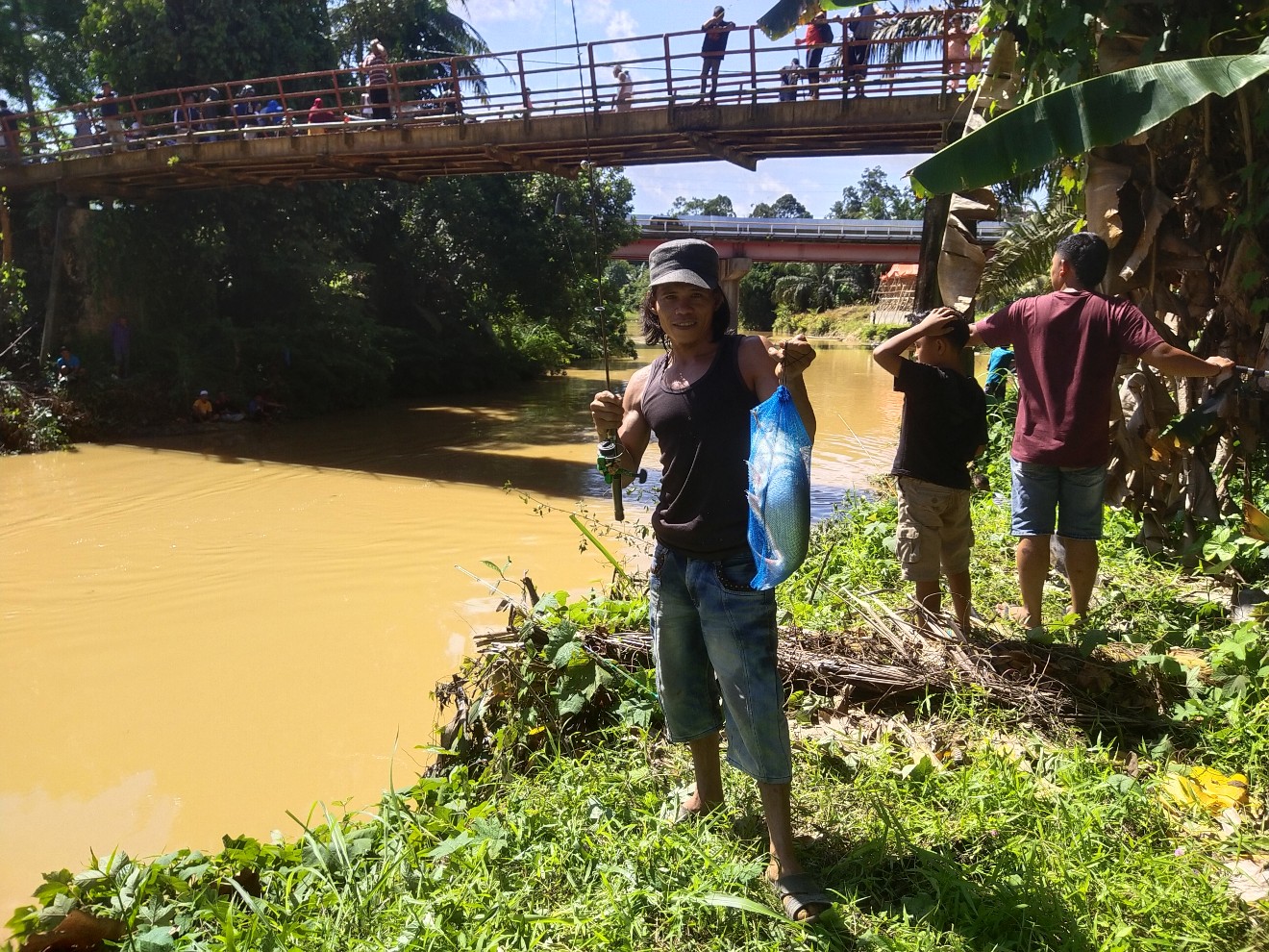 Pantauan media ini di lokasi sekira pukul 10.00 WIB nampak masyarakat baik ibu-ibu, bapak-bapak sampai anak anak menyambut gembira dan bersemangat ikut memancing dengan gratis ditepi Sungan Tantan.