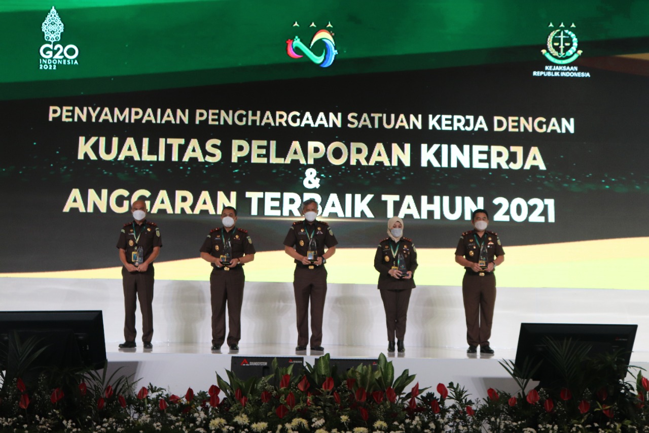 Adapun 5 (lima) Kejaksaan Tinggi peraih penghargaan Kualitas Pelaporan Kinerja dan Anggaran Terbaik Tahun 2021 yaitu Juara I: Kejaksaan Tinggi DKI Jakarta, Juara II: Kejaksaan Tinggi Lampung, Juara III: Kejaksaan Tinggi Sumatera Utara, Juara IV: Kejaksaan Tinggi Jawa Timur, dan Juara V: Kejaksaan Tinggi Sulawesi Tenggara.