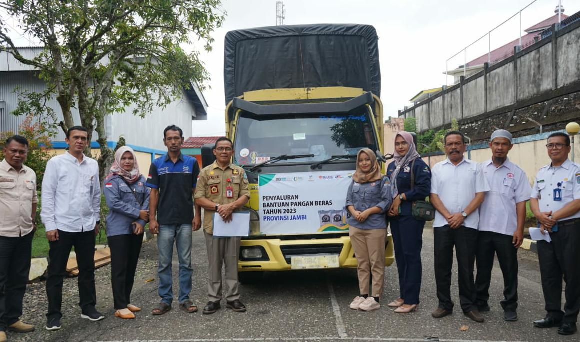 Merangin – Kabupaten Merangin melaunching pelepasan bantuan pangan dari pemerintah pusat serentak di seluruh Indonesia, di Kantor Bulog GBB Sarko Pematang Kandis Bangko wilayah Jambi,Rabu (5/4/2023).