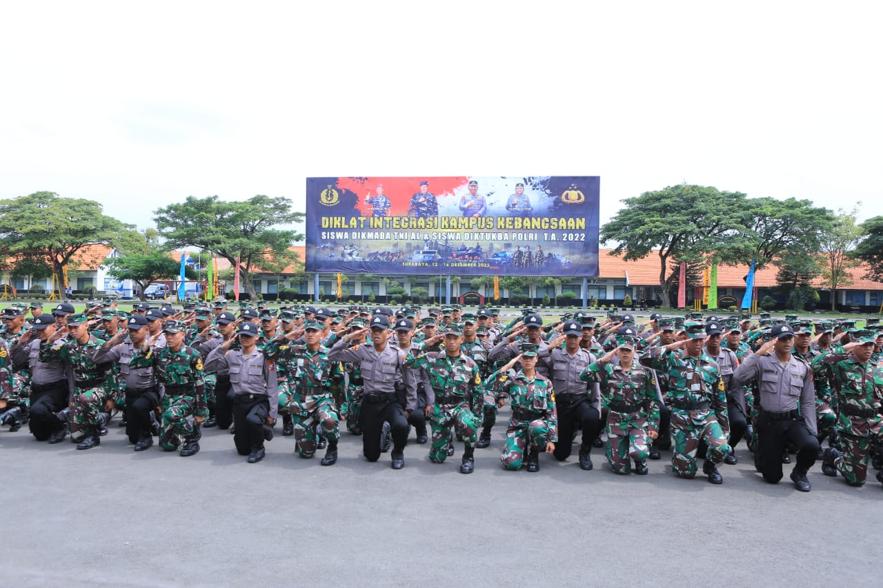 Surabaya – Pelaksanaan Diklat Integrasi Kampus Kebangsaan TNI dan Polri TA 2022 selama tujuh hari mulai tanggal 9-16 Desember 2022 dengan peserta Diklat sebanyak 476 orang terdiri dari Maba TNI 356 orang, Siswa Polri 100 orang Maba Kowal 20 orang resmi dinyatakan selesai.
