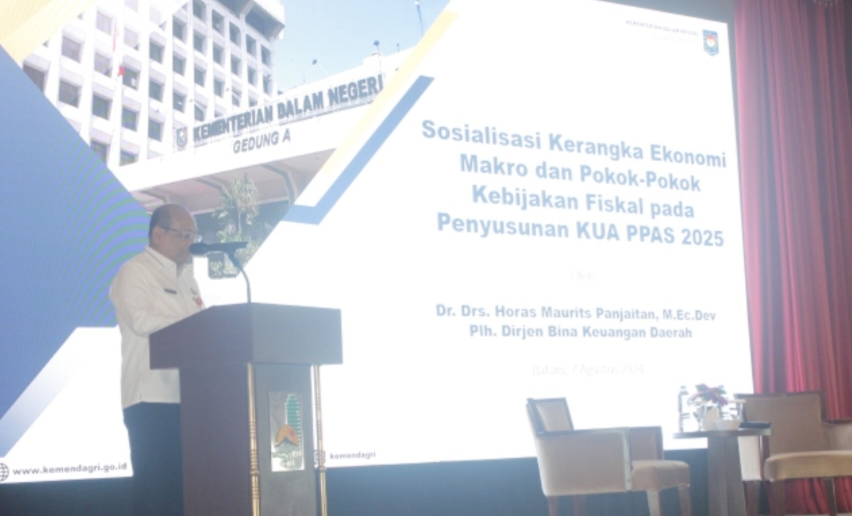 Batam – Kementerian Dalam Negeri (Kemendagri) melalui Direktorat Jenderal (Ditjen) Bina Keuangan Daerah (Keuda) menyosialisasikan kebijakan ekonomi makro dan pokok-pokok kebijakan fiskal pada penyusunan Kebijakan Umum Anggaran Prioritas Plafon Anggaran Sementara (KUA-PPAS) Anggaran Pendapatan dan Belanja Daerah (APBD) 2025. Acara ini berlangsung di Nagoya Hill Hotel, Batam, Provinsi Kepulauan Riau, Rabu, (07/08/2024).