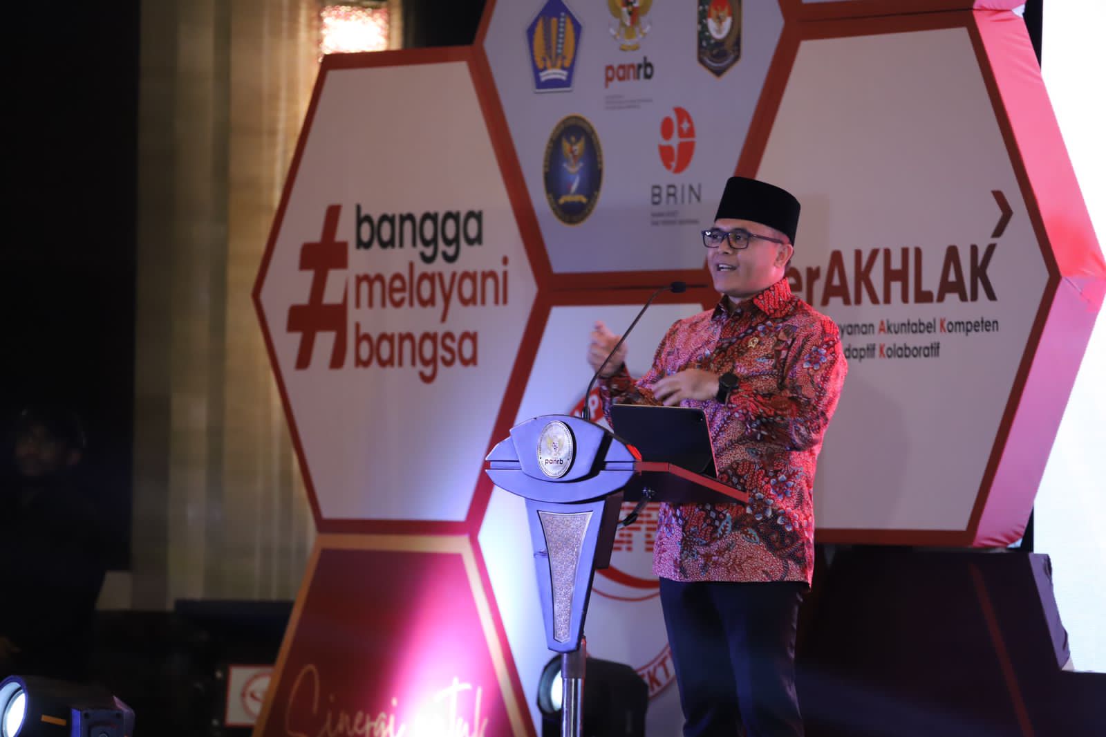Menteri PANRB Abdullah Azwar Anas bersama Menteri Koordinator Bidang Kemaritiman dan Investasi Luhut Binsar Pandjaitan menyerahkan trofi penghargaan itu langsung kepada para penerima.