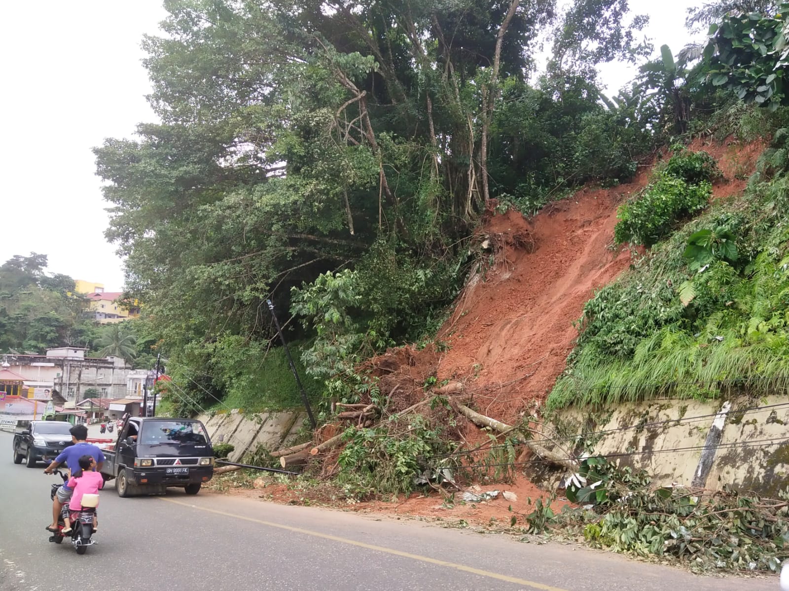Pantauan media ini, pohon yang tumbang meskipun sudah di potong dan longsoran tanah, sampai Selasa sore sekira jam 17.00 WIB belum dilakukan pembersihan. (tugas).
