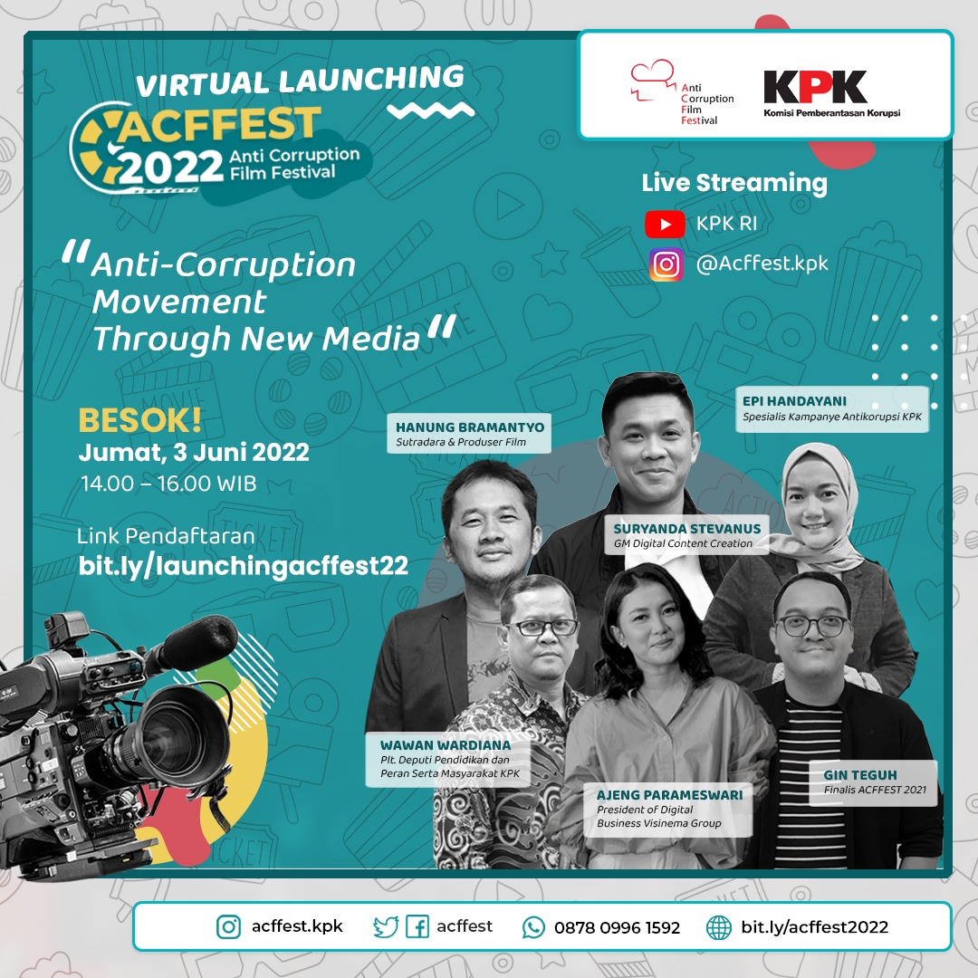 Jakarta – Komisi Pemberantasan Korupsi (KPK) menggelar peluncuran Anti-Corruption Film Festival (ACFFEST) 2022. Pertama kali digelar pada tahun 2013, ACFFEST bertujuan mengajak anak muda yang aktif, kreatif, peduli, dan kritis untuk ikut serta berpartisipasi dalam upaya pemberantasan korupsi.