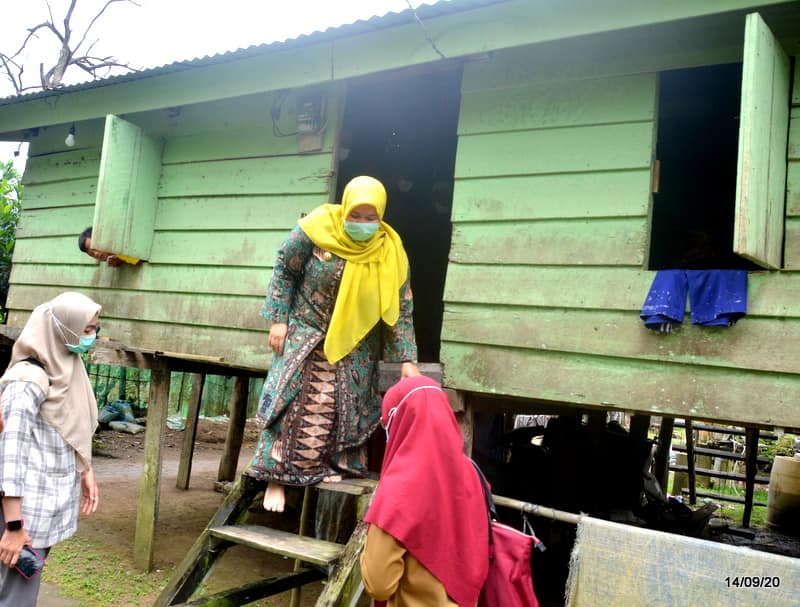 Dimana usai menyerahkan Bantuan Langsung Tunai (BLT), kepada warga tidak mampu di Desa tersebut, secara spontan Bupati Muaro Jambi Masnah jenguk warga yang sakit.
