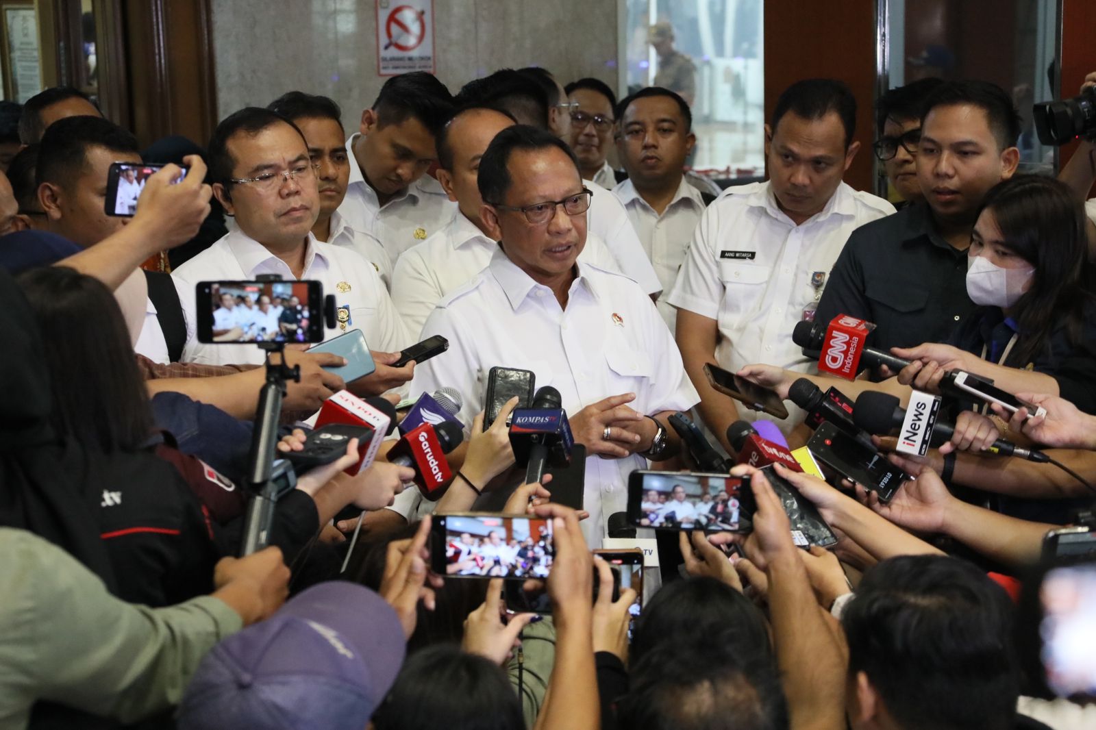 “DPR RI mengundang kita, pemerintah, kita selalu menghormati. DPD RI juga kalau mengundang selalu kita hadir. Lembaga tinggi negara lain jika mengundang kita selalu hadir, karena itulah etika kenegaraan ya,” ujar Mendagri di hadapan awak media usai Rapat Kerja (Raker) Badan Legislasi (Baleg) DPR RI dengan Pemerintah dan Dewan Perwakilan Daerah (DPD) RI di Gedung Nusantara I Baleg DPR RI, Jakarta, Rabu (21/8/2024).