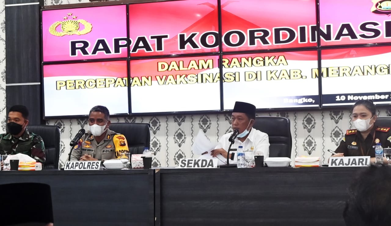 Merangin – Sebanyak 205 kepala desa di Kabupaten Merangin di-warning Sekda Merangin Ir. Fajarman, untuk segera melakukan vaksinasi Covid-19 hingga 70 persen dari jumlah penduduk desa tersebut.