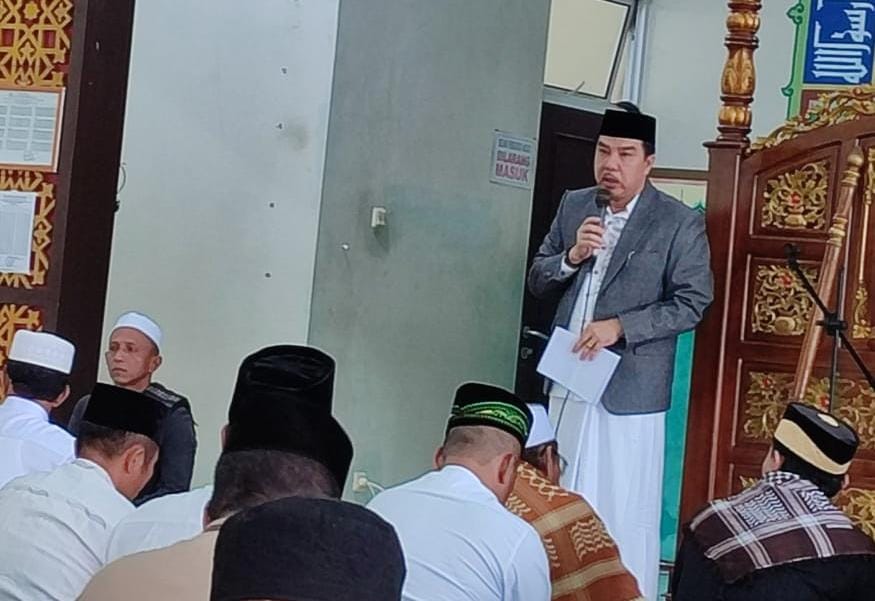 Tampil sebagai imam Shalat Idul Fitri 1445 H yang berlangsung khidmat dibanjiri jemaah itu Ustadz Abdul Al Haris dan bertindak sebagai penceramah Ustadz H Tengku Iskandar.