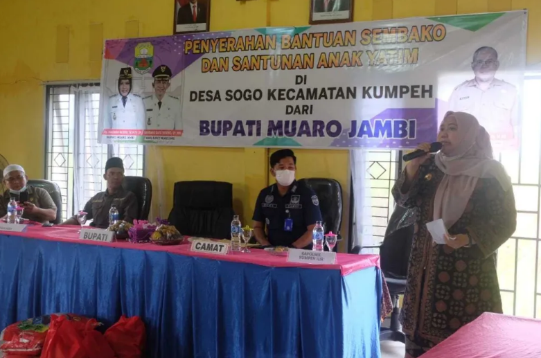Kepala Desa Sogo, Asmadi menyampaikan terimakasih kepada bupati atas kunjungannya kerjanya dan kepada pemerintah Kabupaten Muaro Jambi melalui Dinas Sosial, Pemberdayaan Perempuan dan Perlindungan Anak yang telah menyalurkan bantuan kepada masyarakat Desa Sogo