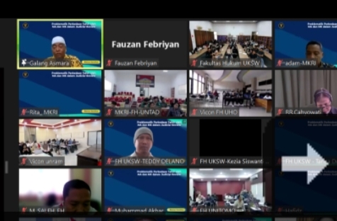 Dipandu secara daring oleh Freidelino P.R.A De Sousa (Dosen Fakultas Hukum UKSW) selaku moderator, Galang Asmara terlebih dahulu mengajak para mahasiswa dari berbagai universitas untuk memahami konsep kekuasaan kehakiman di Indonesia sebagaimana tertuang dalam Pasal 24 ayat (2) UUD NRI Tahun 1945. Konsekuensi dari norma ini di Indonesia terdapat dua lembaga yang memegang kekuasaan kehakiman dengan ranah kerja masing-masing.