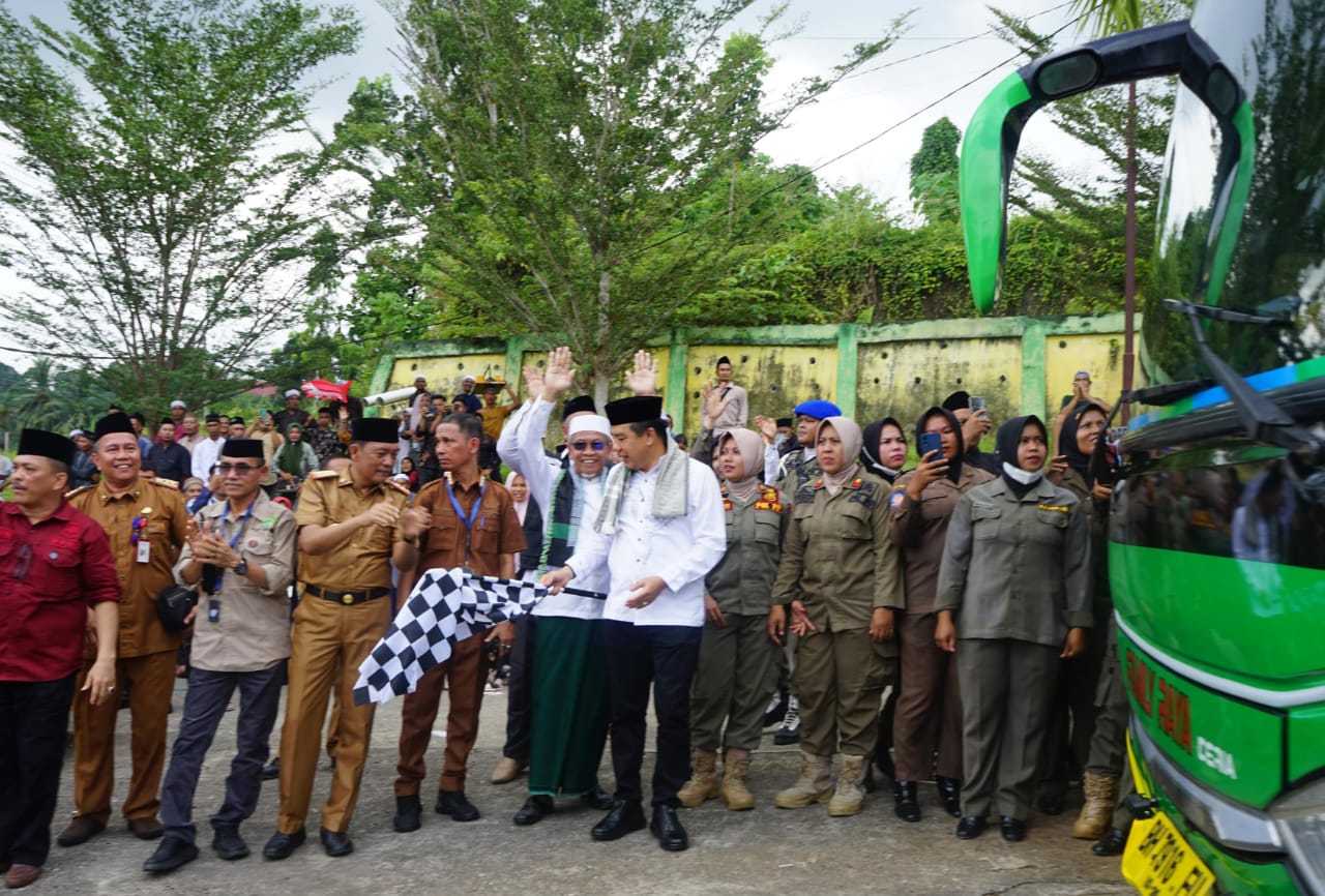 Merangin – Penjabat (Pj) Bupati Merangin H Mukti didampingi Sekda Merangin Fajarman, memberangkatkan sebanyak 168 orang Calon Jemaah Haji (CJH) Merangin dan satu orang pendamping, yang tergabung dalam kloter 24, Selasa (04/6/2024).