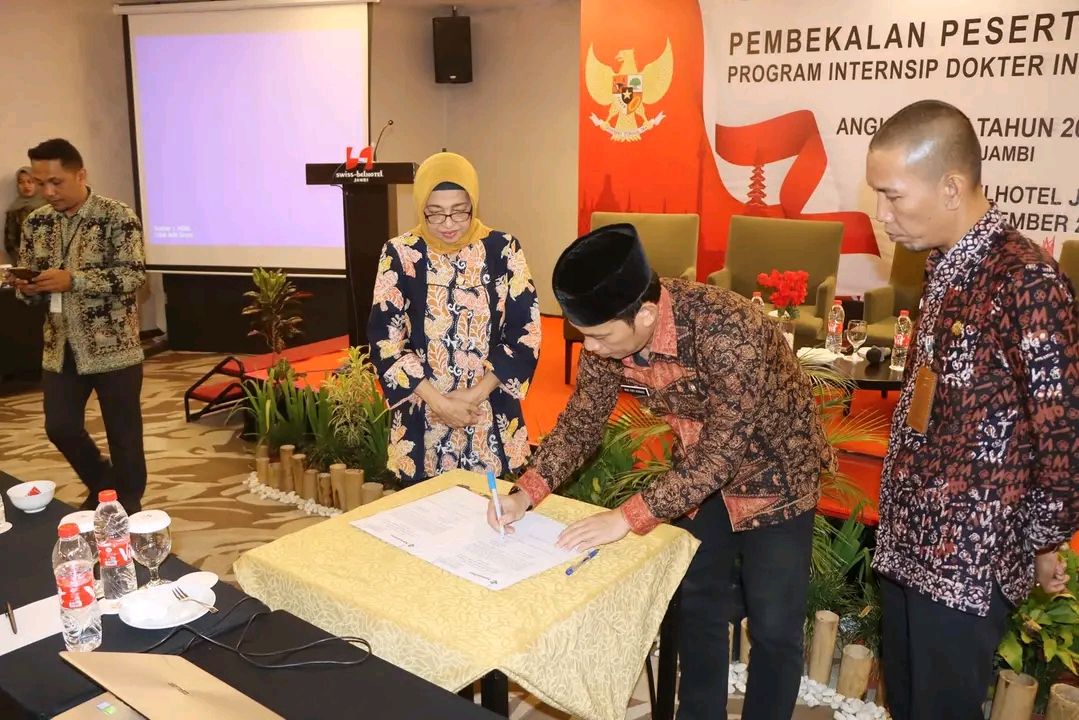 “Program Internship Dokter Indonesia (PIDI) ini berlangsung selama satu tahun, di mana para dokter akan menjalani pematangan di wahana-wahana yang sudah ditentukan dengan bimbingan langsung dari Dinas Kesehatan Provinsi Jambi,” jelas Pjs. Bupati Tanjung Jabung Barat. (Rinaldi)