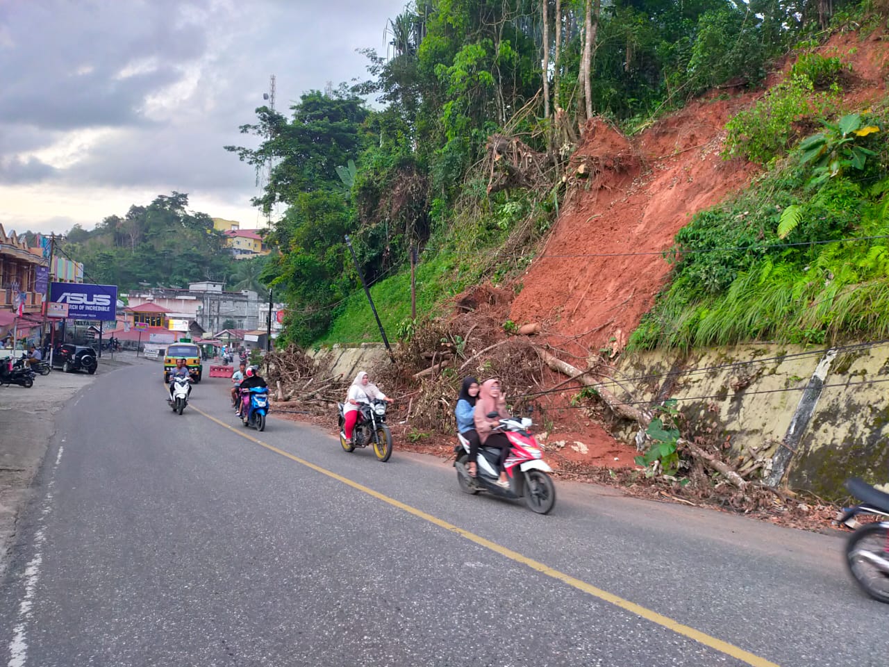 “Sudah 1 (satu) minggu potongan pohon yang tumbang dan bekas tanah yang longsor ini belum dilakukan pembersihan. Kiranya Pemda dan pihak terkait segera lakukan pembersihan karena mengganggu saat lewat,”keluh Tri salah satu pengendara menyampaikan ke media ini, Rabu (1/11/2022).