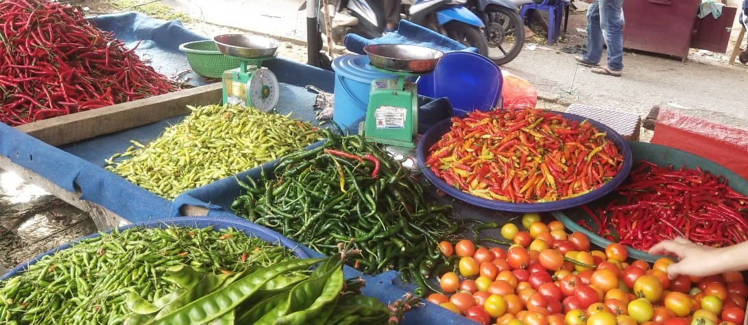 Untuk harga menurut penuturan pedagang , cabe merah dijual Rp25 ribu/kg sedangkan diawal Ramadhan Rp30 ribu/kg, cabe rawit Rp20 ribu/kg diawal Ramadhan Rp25 ribu/kg, cabe hijau harganya masih stabil Rp25 ribu/kg.