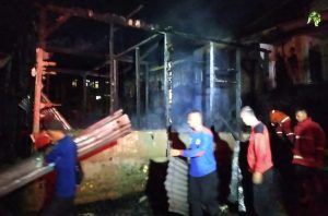 “Sumber api diperkirakan dari konsleting listrik. Karena rumah merupakan bangunan semi permanen terdiri dari batu bata dan papan, sehingga api cepat menghanguskan seluruh bangunan 5 (lima) pintu,”ucapnya.