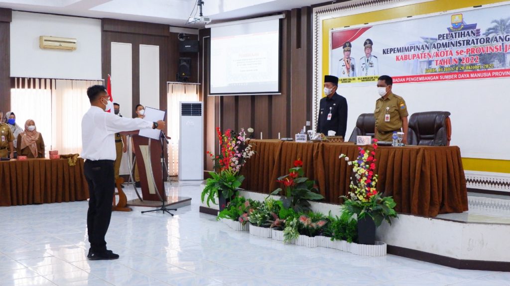 Jambi – Wakil Gubernur Jambi, Drs.H.Abdullah Sani,M.Pd.I., mengemukakan, setiap pemimpin harus memiliki strategi yang inovatif dalam menjalankan amanahnya, dan mempunyai komitmen untuk bersedia mendengarkan setiap masukan serta kritikan demi tercapainya tujuan bersama. Hal tersebut dikemukakan Sani pada Pembukaan Pelatihan Kepemimpinan Administrator Angkatan VI Pemerintah Kabupaten/Kota se-Provinsi Jambi Tahun 2022, bertempat di Aula Kantor Badan Pengembangan Sumber Daya Manusia (BPSDM) Provinsi Jambi, Senin (04/07/2022).