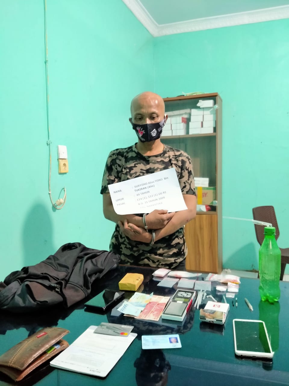 Selanjutnya tersangka dibawa kerumahnya untuk dilakukan penggeledahan yang disaksikan oleh Ketua RT setempat. Saat dilakukan penggeledahan ditemukan barang bukti didalam jaket warna hitam berupa 1 (satu) bungkus rokok sampoerna mild yang berisikan 1 (satu) paket kecil narkotika dan pipet yang digunakan untuk mengkonsumsi narkotika.