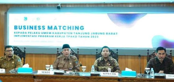 Kuala Tungkal – Mewakili Bupati Tanjung Jabung Barat, Sekretaris Daerah Ir.H.Agus Sanusi M,Si Membuka secara resmi acara Bussiness Matching kepada Pelaku UMKM Kabupaten Tanjab Barat dan Implementasi program Kerja Tim Percepatan Akses Keuangan Daerah (TPAKD) tahun 2023. Selasa (07/03).