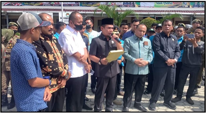 “Setelah melalui pembahasan yang cukup alot, panjang, fokus dan khidmat maka DPRD Kota Sungai Penuh merekomendasikan kepada Pemkot Sungai Penuh mengenai rentang waktu penampungan sampah di Renah Padang Tinggi (RPT) Desa Sungai Ning, Kecamatan Sungai Bungkal untuk ditutup dan dihentikan segala aktifitas di lokasi tersebut paling lama 6 bulan terhitung sejak rekomendasi ini dikeluarkan atau sejak tanggal 3 Agustus 2022,” kata Ketua DPRD Kota Sungai Penuh H. Fajran didampingi Wakil Ketua II Syafriadi, Kamis (04/08/2022).