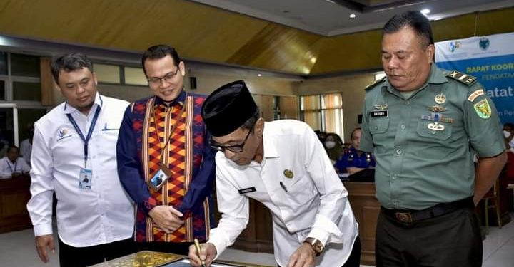 Batanghari – Didampingi Adib Sudibyo Kepala Badan Pusat Statistik (BPS) Provinsi Jambi, Hartono Kepala BPS Kabupaten Batang Hari serta Asisten I Setda Batang Hari M. Rifa’i. Wakil Bupati Batanghari Haji Bakhtiar pimpin dan buka langsung rapat koordinasi (Rakor) pendataan awal registrasi sosial ekonomi (Regsosek) 2022 Mencatat untuk Membangun Negeri, Rabu (21/09/2022).