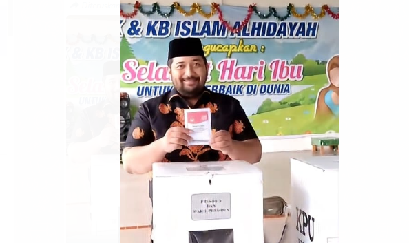 Pinto tiba di TPS sekitar pukul 12.50 WIB disambut dan dilayanai oleh petugas KPPS dan diarahkan untuk mengambil surat suara dan menuju bilik suara.