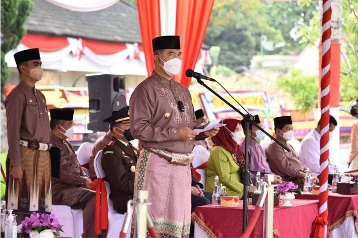JC, Kota Jambi – Walikota Jambi Syarif Fasha menjadi inspektur Upacara pada Hari Ulang Tahun (HUT) Pemerintah Kota Jambi yang ke 75 tahun 2021, Upacara tersebut dipusatkan di lapangan utama kantor walikota Jambi, Senin (17/05/2021).